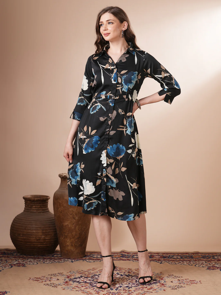 Bold floral prints never go out of style, especially for daytime or theme-based parties. These dresses mix femininity with dramatic patterns, making them eye-catching and lively. Choose large prints, vibrant colors, or dark florals for a bolder look. Flowing silhouettes like A-line, flared, or maxi dresses offer graceful movement and comfort. Floral bold pieces also pair well with soft makeup and matching accessories, making them perfect for garden parties, family gatherings, or evening celebrations. This is a great option for girls who want to look bold without going for glitter or body-hugging fits.